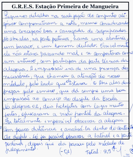 o 9.9 que deu mais polêmica foi em Enredo. Artur Nunes Gomes