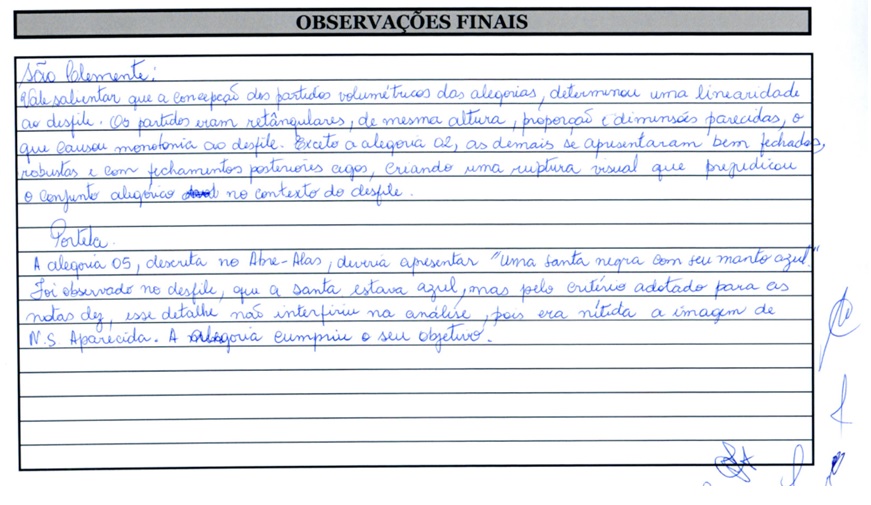 Que a Beija-Flor foi a grande decepção do ano, isso todo mundo sabe. Que ninguém entendeu as fábulas colocadas no enredo, também. Todos os jurados de Enredo criticaram a inserção delas ao descontar, nos quatro módulos, 0,7 totais. Abaixo, a justificativa de Pérsio Gomyde Brasil (9,8).