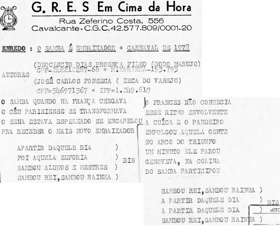 citar. Em Cima da Hora 1978 “O Samba é o Embaixador” e Império Serrano 1994