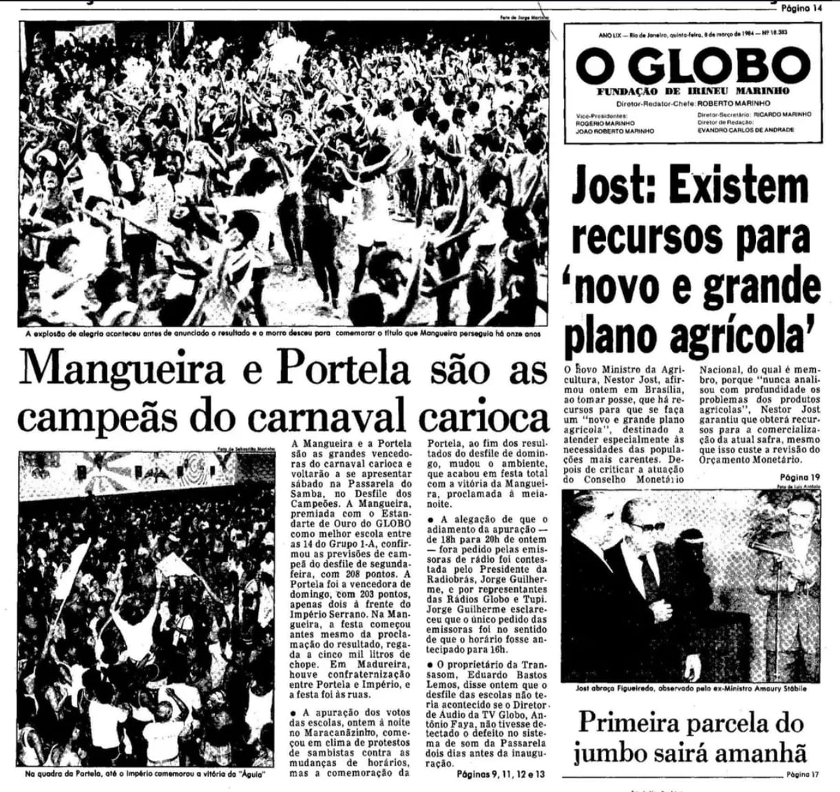 Carnaval e imprensa no Rio: antecedentes Desde os anos 1930, O Globo participou ativamente da promoção das festividades carnavalescas. Em 1933, por exemplo, o jornal noticiou e promoveu o desfile das escolas de samba com público estimado em 40 mil pessoas na antiga Praça Onze, destacando o espetáculo como um evento de grande porte cultural e social na cidade. Ao longo das décadas seguintes, essa cobertura se intensificou, e o jornal contribuiu para consolidar a tradição de dar destaque ao Carnaval não apenas como folia popular, mas como evento cultural e referência de identidade carioca — incluindo a criação de instrumentos jornalísticos como o Estandarte de Ouro, prêmio que desde 1972 exalta os destaques dos desfiles das escolas de samba, reforçando a importância simbólica e crítica do jornalismo na festa. O debate prévio à construção do Sambódromo Ao final da década de 1970 e início dos anos 1980, o Carnaval carioca já enfrentava desafios estruturais. Até então, desfiles de escolas de samba eram realizados em diferentes locais — Praça Onze, Avenida Rio Branco, Avenida Presidente Vargas — muitas vezes com arquibancadas improvisadas e custo elevado de montagem e desmontagem a cada ano, além de entraves logísticos para o público e para as próprias agremiações. Esse contexto urbano e cultural — com desfiles itinerantes e dificuldades crescentes — foi amplamente retratado pela imprensa carioca e nacional, refletindo a necessidade de um espaço permanente para o maior espetáculo popular do planeta. O Globo certamente abordou esses debates em colunas, editoriais e reportagem de jornalismo local. O Acervo Digital O Globo inclui capturas dessas páginas, que podem ser acessadas por pesquisadores interessados. A guerra contra Brizola A cobertura do jornal O Globo acerca da idealização e da construção do Sambódromo do Rio de Janeiro não pode ser compreendida de forma plena sem que se insira, no centro da análise, o conflito político e editorial travado entre o Grupo Globo e o então governador do Estado, Leonel Brizola. Tal embate extrapolava o campo estritamente administrativo e alcançava o terreno simbólico, ideológico e comunicacional, refletindo-se de maneira clara no tom adotado pelo jornal ao tratar de grandes projetos estruturantes associados à gestão estadual — entre eles, a criação da Passarela do Samba. Desde o anúncio oficial do projeto, em setembro de 1983, a abordagem de O Globo foi marcada por uma postura nitidamente mais crítica e vigilante do que aquela observada em coberturas anteriores de iniciativas ligadas ao carnaval carioca. O jornal não apenas registrou a proposta do governo estadual de construir, em tempo recorde, um equipamento urbano definitivo para os desfiles das escolas de samba, como também passou a problematizar, em reportagens extensas e editoriais, o contexto político no qual a obra se inseria. A figura de Brizola aparecia frequentemente associada a uma retórica de confronto com grandes grupos de mídia, acusados pelo governador de exercerem influência excessiva sobre a opinião pública e de atuarem politicamente contra seu projeto de poder. Esse ambiente de tensão contribuiu para que o Sambódromo fosse enquadrado, por O Globo, não apenas como uma solução técnica para o carnaval, mas como um símbolo de uma gestão personalista, centralizadora e, segundo o jornal, pouco aberta ao contraditório. As matérias publicadas ao longo do último trimestre de 1983 evidenciam esse viés crítico ao enfatizar, de forma recorrente, os custos da obra, a celeridade considerada excessiva do cronograma, e a utilização de recursos públicos em um momento de dificuldades econômicas do estado. Em textos de caráter analítico, O Globo questionava se a construção de uma passarela permanente para o carnaval deveria ser prioridade frente a demandas urgentes nas áreas de saúde, transporte e segurança. A presença constante do nome de Brizola nos títulos e subtítulos das reportagens reforçava a personalização do projeto, muitas vezes tratado como uma iniciativa diretamente vinculada à vontade política do governador, mais do que como fruto de um consenso técnico ou institucional. Esse enquadramento editorial também se estendia às figuras intelectuais e técnicas envolvidas no projeto. O arquiteto Oscar Niemeyer, responsável pelo desenho do Sambódromo, era frequentemente mencionado com respeito à sua trajetória consagrada, mas suas soluções arquitetônicas eram submetidas a avaliações rigorosas, sobretudo no que dizia respeito à funcionalidade, à circulação do público e à adaptação da estrutura às exigências do espetáculo carnavalesco. Da mesma forma, o papel do antropólogo Darcy Ribeiro, então vice-governador e um dos principais articuladores conceituais da obra, era apresentado em um registro ambíguo: reconhecia-se sua autoridade intelectual e sua defesa do carnaval como expressão popular, mas não se deixava de associá-lo à estratégia política do governo estadual. Com o avanço das obras na Avenida Marquês de Sapucaí, a cobertura intensificou-se, adotando um tom que mesclava reportagem factual, análise crítica e, em alguns momentos, ironia sutil. O jornal acompanhava o ritmo acelerado da construção quase como uma contagem regressiva, destacando diariamente prazos, improvisações e soluções emergenciais. Esse acompanhamento minucioso revelava um jornalismo atento aos detalhes técnicos, mas também interessado em expor eventuais fragilidades do projeto, reforçando a narrativa de que o Sambódromo nascera sob o signo da pressa e da controvérsia política. Após a inauguração, em março de 1984, o folhetim manteve essa linha editorial ao registrar tanto o impacto visual e simbólico da nova passarela quanto os problemas observados nos primeiros desfiles: dificuldades de acesso, questões de acústica, falhas de infraestrutura e desafios logísticos enfrent
