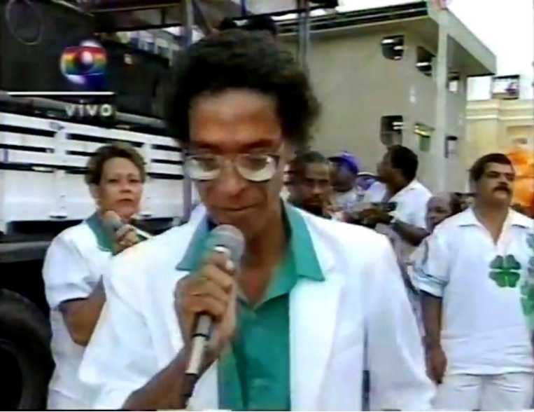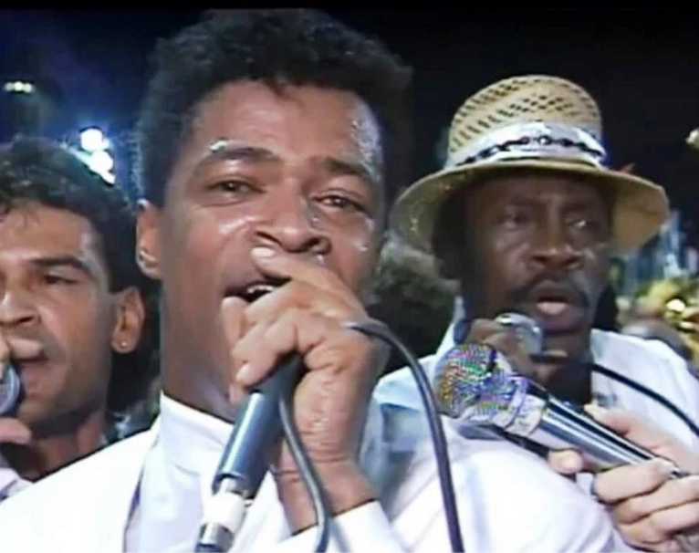 Na foto, Nego no desfile do Arranco em 1992, ano que o cantor fez dobradinha com a Unidos da Tijuca. Crédito: Samba S/A | Youtube.